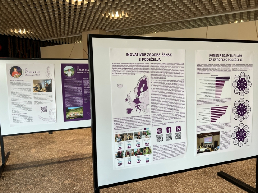 Razstava »Inovativne zgodbe žensk s podeželja« gostuje v avli Ministrstva za kmetijstvo, gozdarstvo in prehrano (Dunajska cesta 22 v Ljubljani), ogledate pa si jo lahko od 14. 3. - 14. 4. 2025. Nastala je v okviru projekta FLIARA (Female-Led Innovation in Agriculture and Rural Areas).