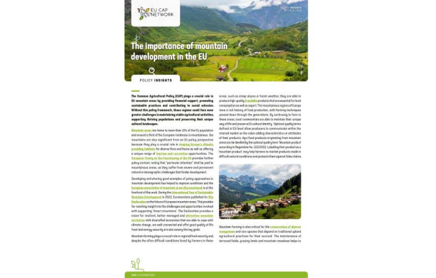 Gorska območja so s perspektive EU politike zelo pomembna, saj oblikujejo evropske podnebne pogoje, zagotavljajo življenjski prostor raznoliki flori in favni ter ponujajo unikaten nabor priložnosti za turizem in rekreacijo. To je tudi tema novega članka Policy Insights. Članek si preberite TUKAJ.