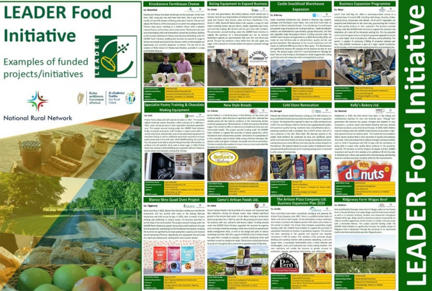 Irska nacionalna mreža za podeželje je izdala novo knjižico, v kateri je predstavljenih 12 projektov in pobud po celotnem irskem podeželju, ki so bili podprti v okviru LEADER prehranske pobude v vrednosti 15 milijonov evrov. To zagotavlja finančno podporo za obnovo in razširitev proizvodnih zmogljivosti, nakup predelovalne opreme ter podporo udeležencem v obrtniškem sektorju hrane in pijače na področjih, kot so razvoj trga, konkurenčnost in inovacije.