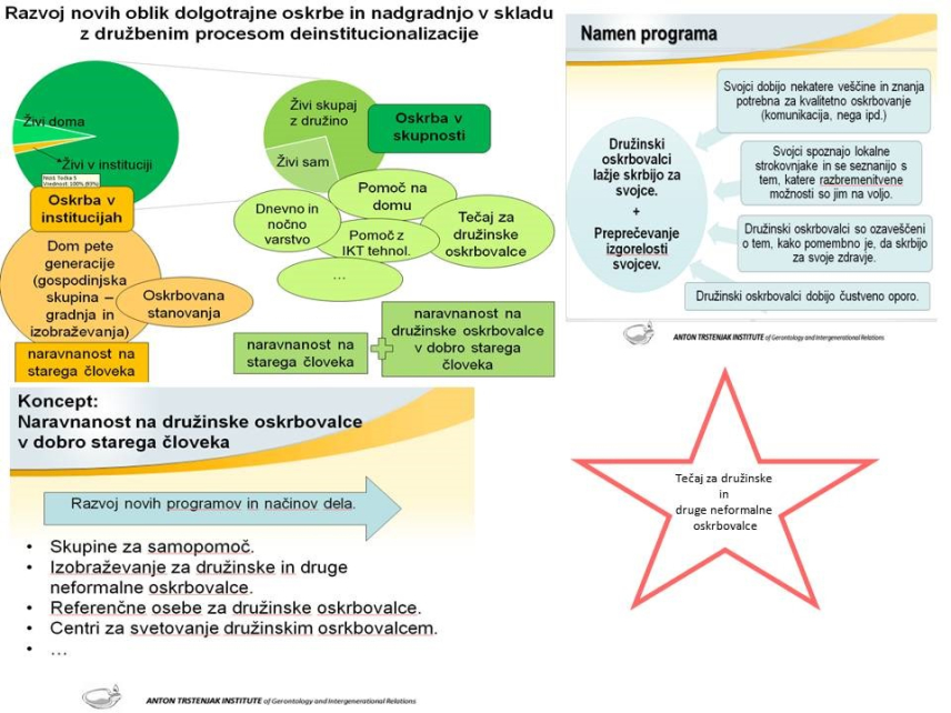 Dolgotrajna oskrba je socialni steber, ki vsebuje osnovno zdravstveno zavarovanje za bolezen, zdravila, bolnišnico, oskrbo in podobno. Kadar človek ne more več sam opravljati osnovnih vsakdanjih opravil, mu na pomoč priskoči državni sistem, in sicer finančno, z ustanovami, storitvami in drugimi aktivnostmi, ki jih potrebuje. Veliko dolgotrajne oskrbe se dogaja doma, s pomočjo sorodnikov, sosedov, znancev. Vsakodnevno približno 200.000 sorodnikov v Sloveniji pomaga nekomu doma, ker sam ne zmore poskrbeti zase zaradi starosti, bolezni, invalidnosti. Prav tako vsak teden približno 25.000 sosedov v Sloveniji prinese hrano, skuha, zakuri ali kako drugače pomaga sosedom, ki so onemogli, zlasti zaradi starosti ali bolezni. Med predavanjem smo se sprehodili od oskrbe v preteklosti, kako so na primer še približno 150 let nazaj bolj ali manj vse ljudi oskrbovali doma in kako so se skozi čas razvijali domovi do današnjih dni. Kot pravi prof. dr. Jože Ramovš: »Človek je bitje, ki, kadar je pri močeh, pomaga drugim, drugi pa pomagajo njemu. Pravzaprav smo vsi celo življenje drug od drugega odvisni. Na tem temelji oskrba.«