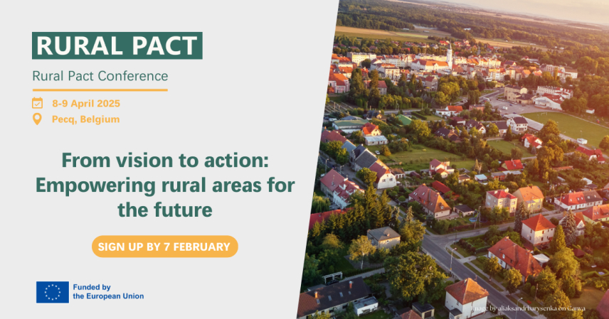 Za udeležbo na drugi konferenci Podeželskega pakta »Od vizije do dejanj: Opolnomočenje podeželja za prihodnost« lahko do 7. februarja 2025 izrazite interes na povezavi TUKAJ. Na spletni strani dogodka si lahko ogledate vse inforamcije o dogodku vključno z osnutkom programa TUKAJ.