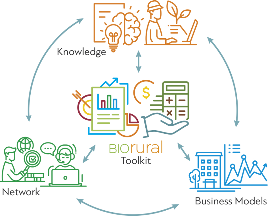 Rural Toolkit je spletni zalogovnik bioloških rešitev, ki omogoča interakcijo med podeželskimi akterji in zagotavlja podlago za širšo uporabo bioloških rešitev na podeželju, kar omogoča prehod podeželskih območij iz linearnega gospodarstva v krožno biološko gospodarstvo.
